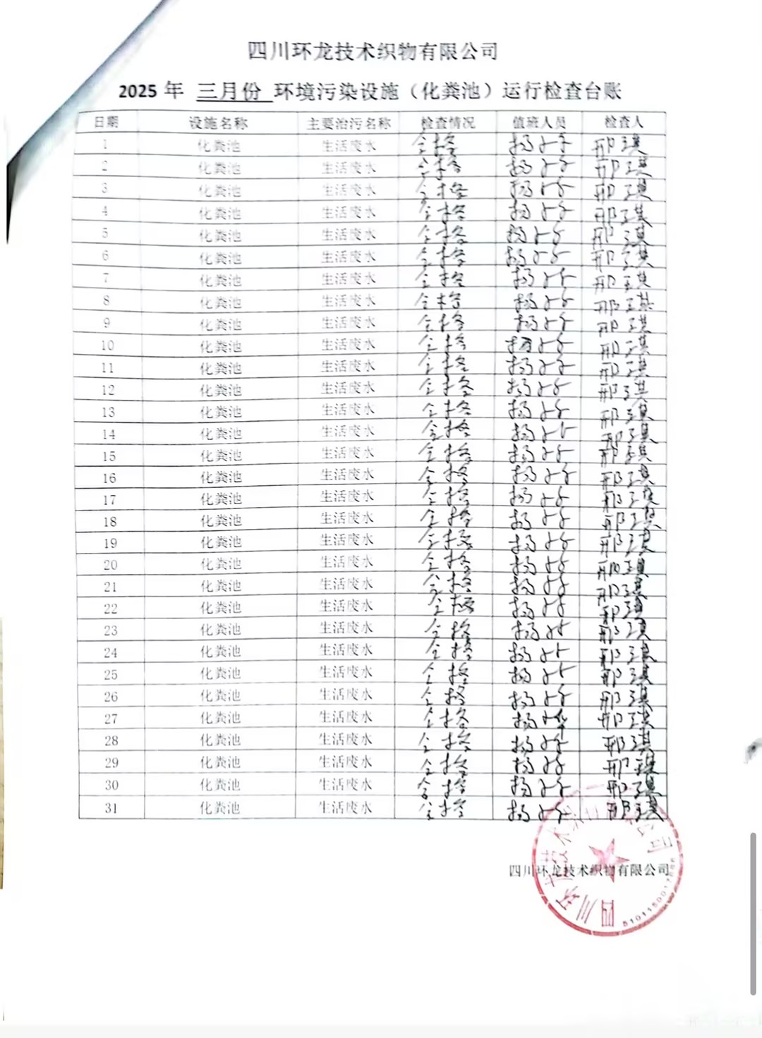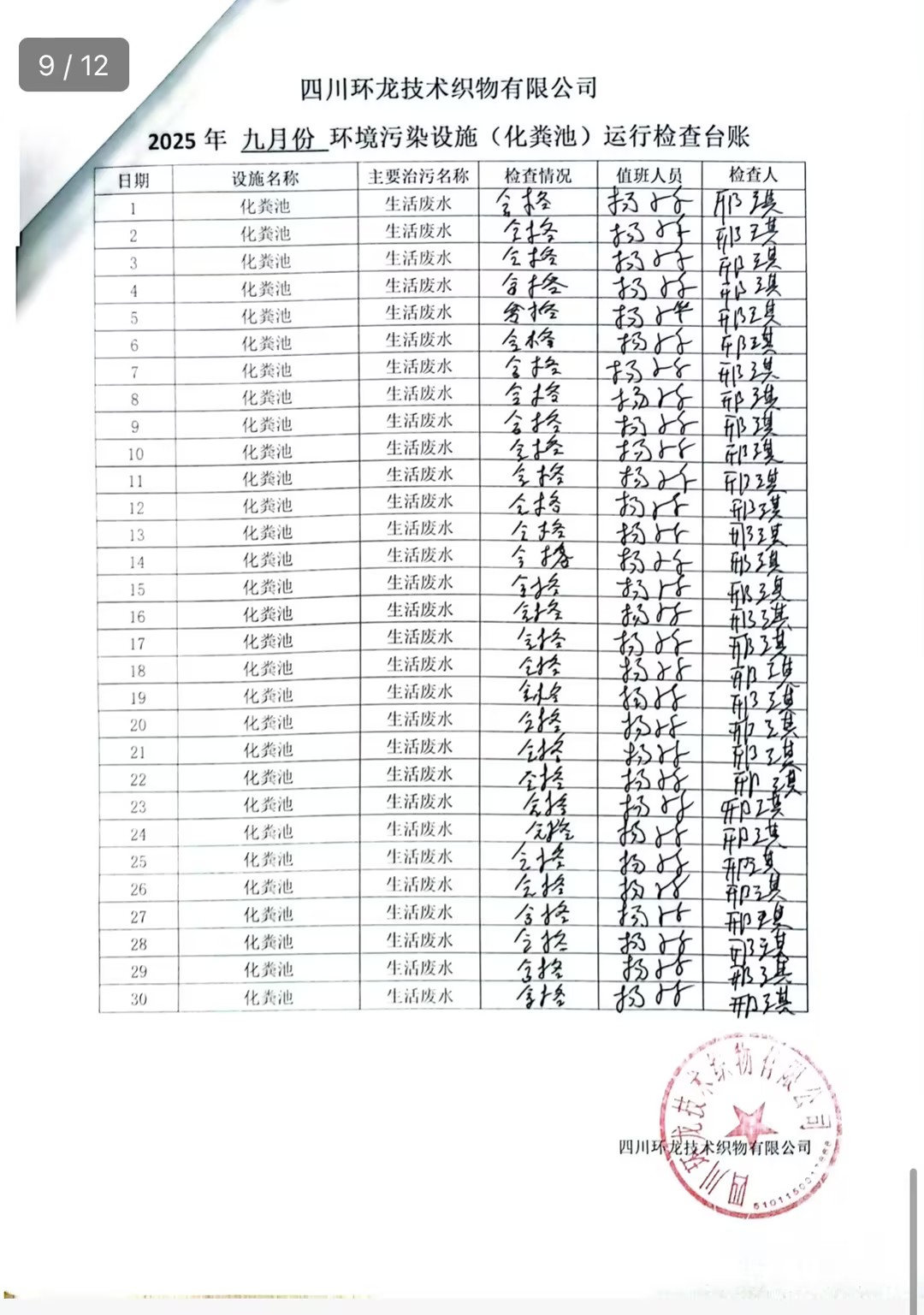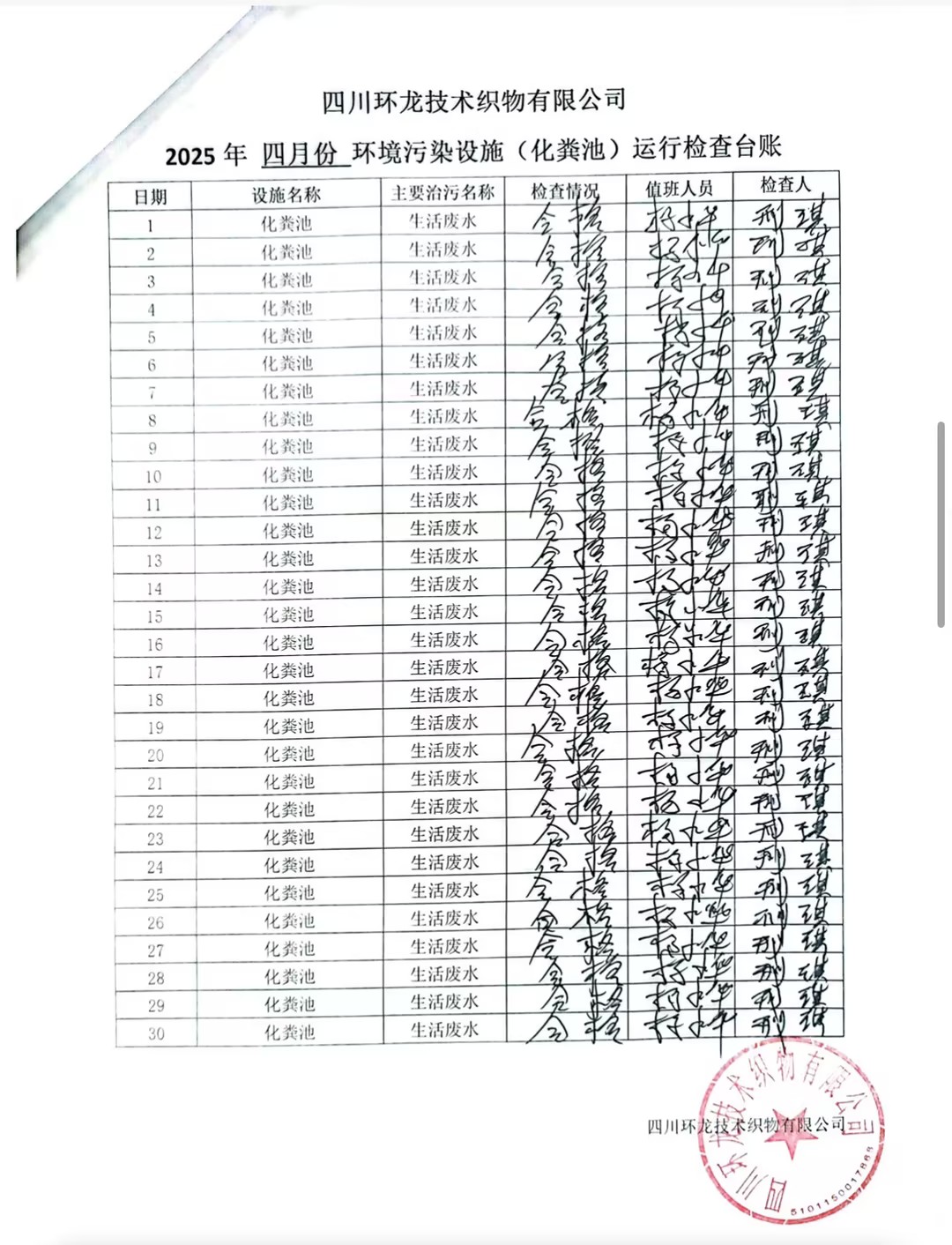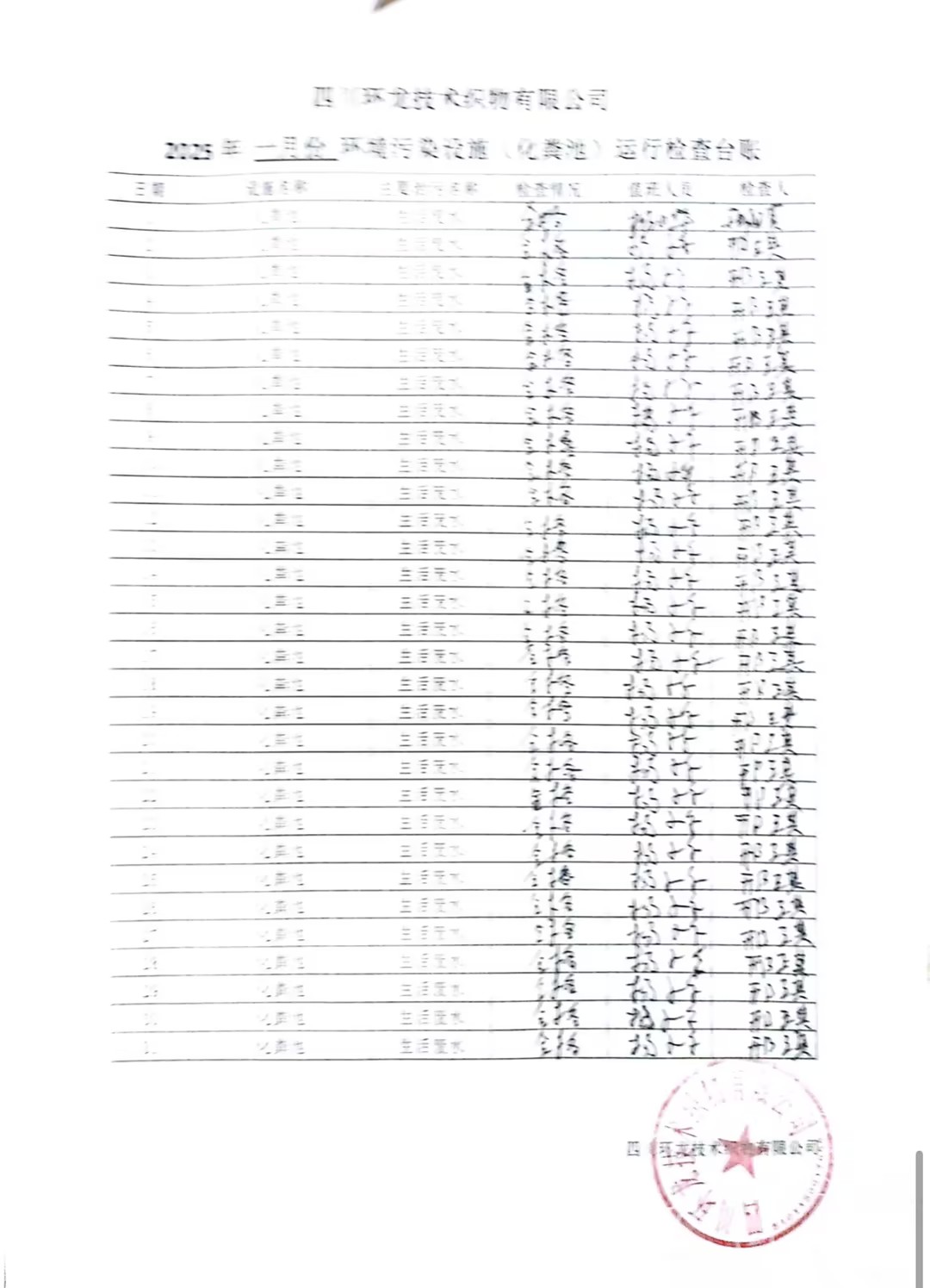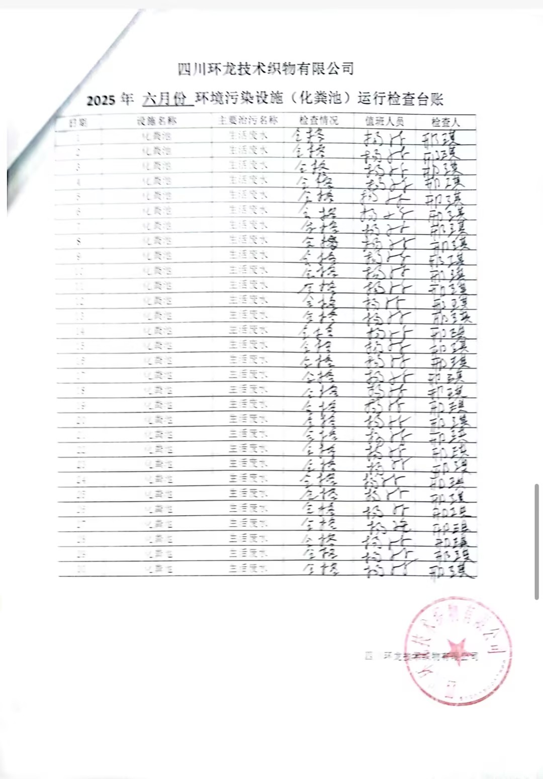 油烟净化器、化粪池运行台账